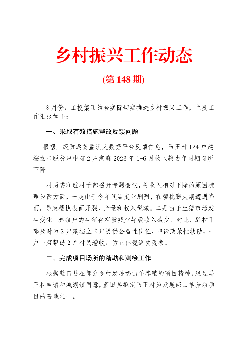 乡村振兴工作动态 (第148期)